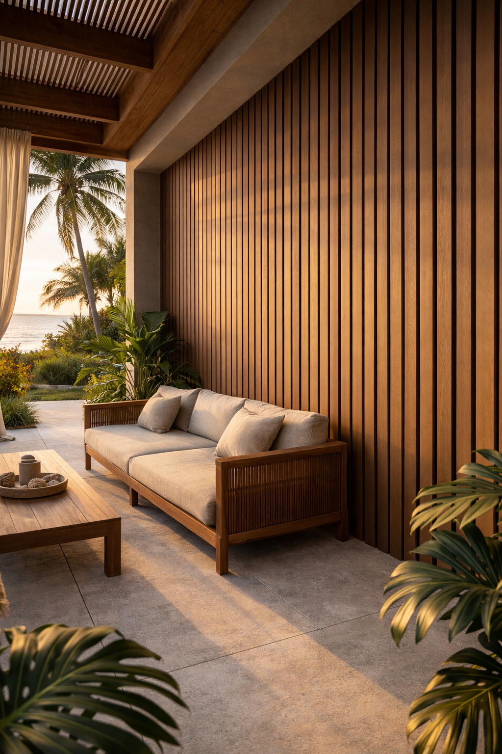 Paneles arquitectónicos con textura lineal y estética contemporánea que aportan calidez y...