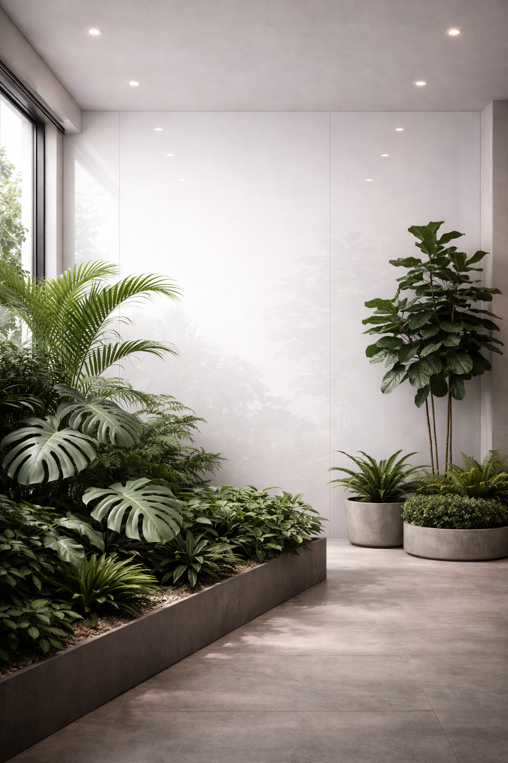 Paneles decorativos con textura lineal y acabado moderno que aportan calidez y orden visual a los espacios. Su diseño permite integrarlos en muros y plafones, generando ambientes elegantes con una fuerte presencia arquitectónica.